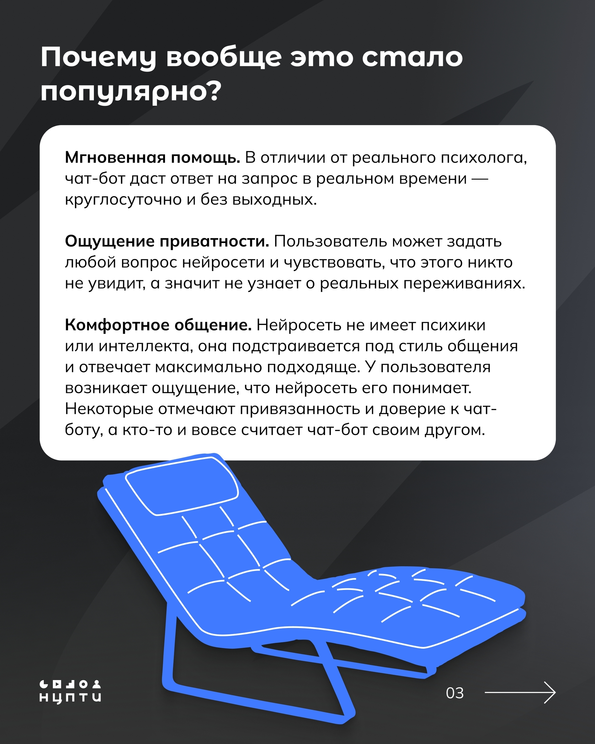 Нейросети ушли далеко за пределы простых запросов: сегодня ИИ может помочь с рецептом блюда, написанием текста и даже — дать совет по снятию стресса.