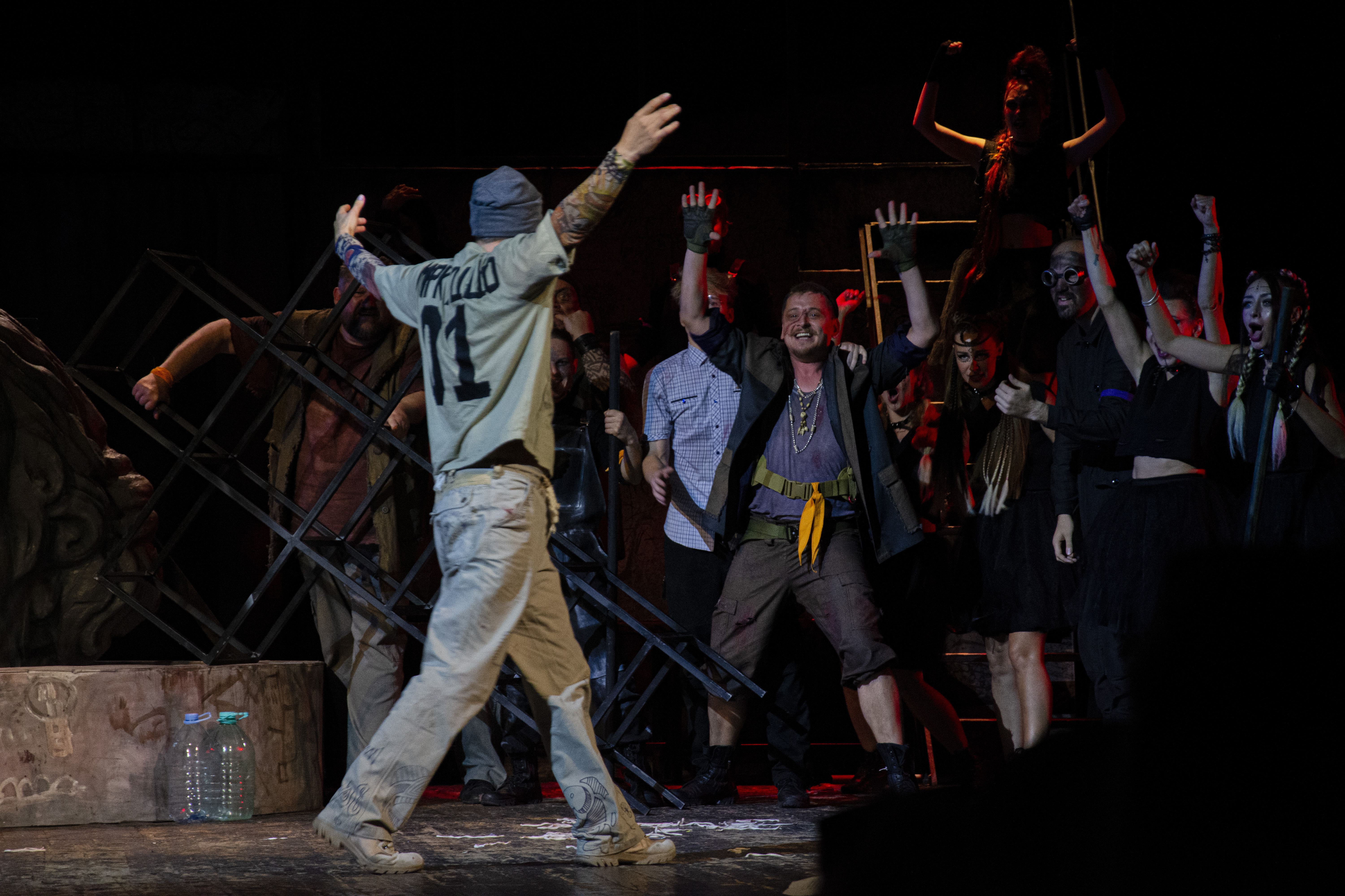 Режиссёр не переносит пьесу в современность и не повторяет хрестоматийные образы. Вместо этого он создаёт альтернативную вселенную, где война — не фон, а главный герой. Декорации — обугленные руины, костюмы — смесь рваных мундиров и траурных покрывал, свет — тусклый, как последний вздох. Даже воздух здесь кажется тяжёлым от пепла.
