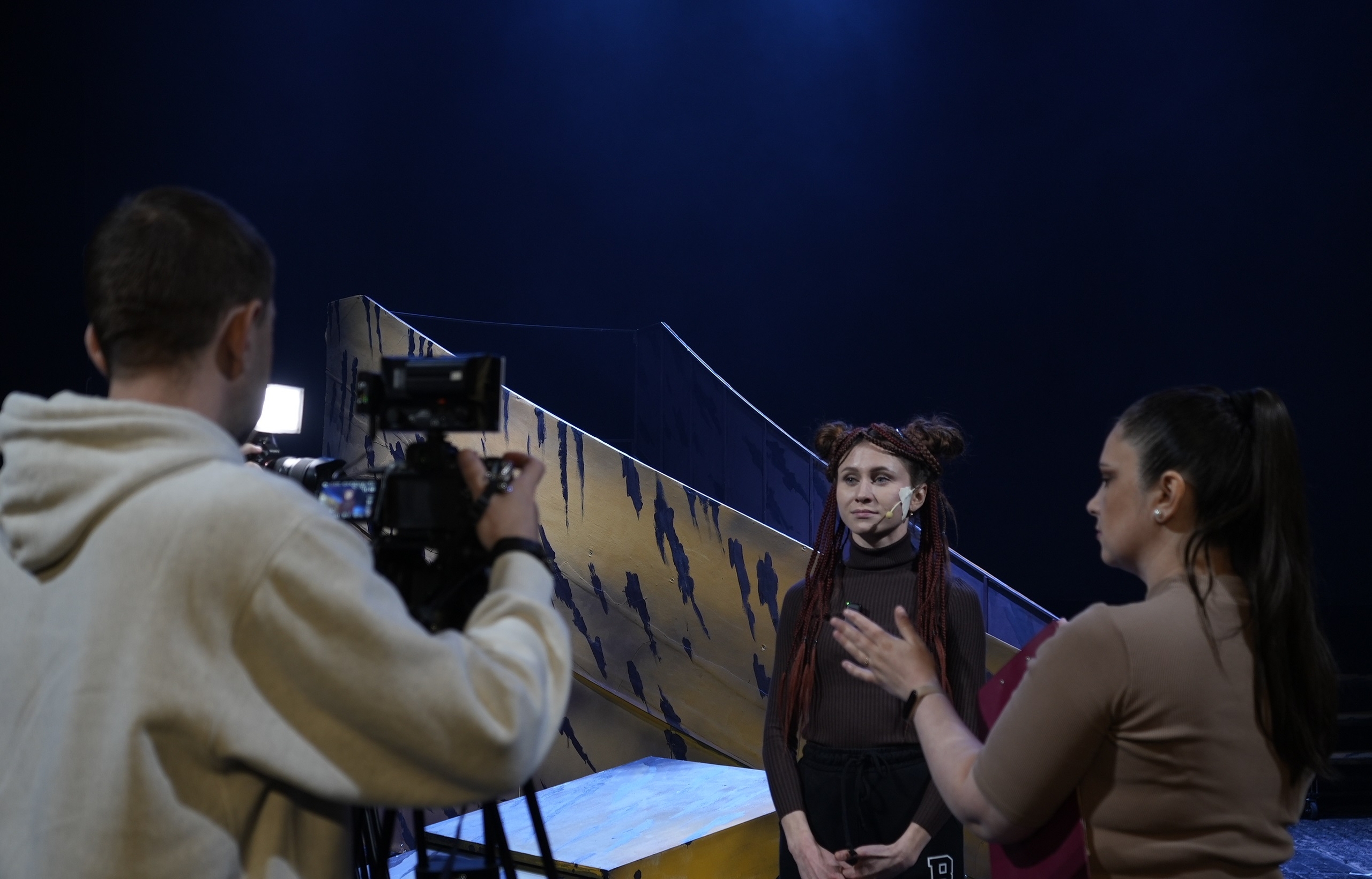 Пока оператор ищет идеальный ракурс, а ведущий настраивает звук, жизнь в театре не останавливается ни на секунду.