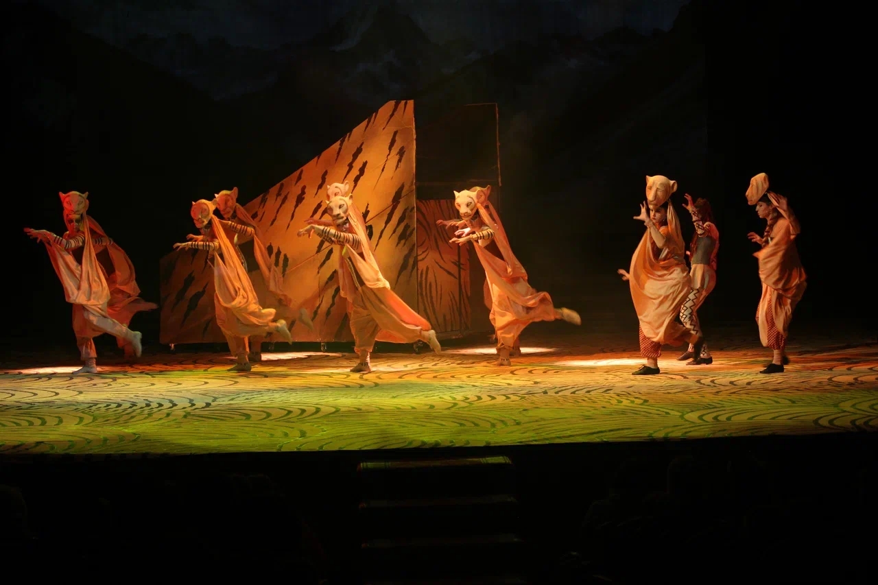 Декорации, яркие костюмы и грим артистов, воссоздающие атмосферу африканской саванны, световая партитура спектакля создали эффект полного погружения.